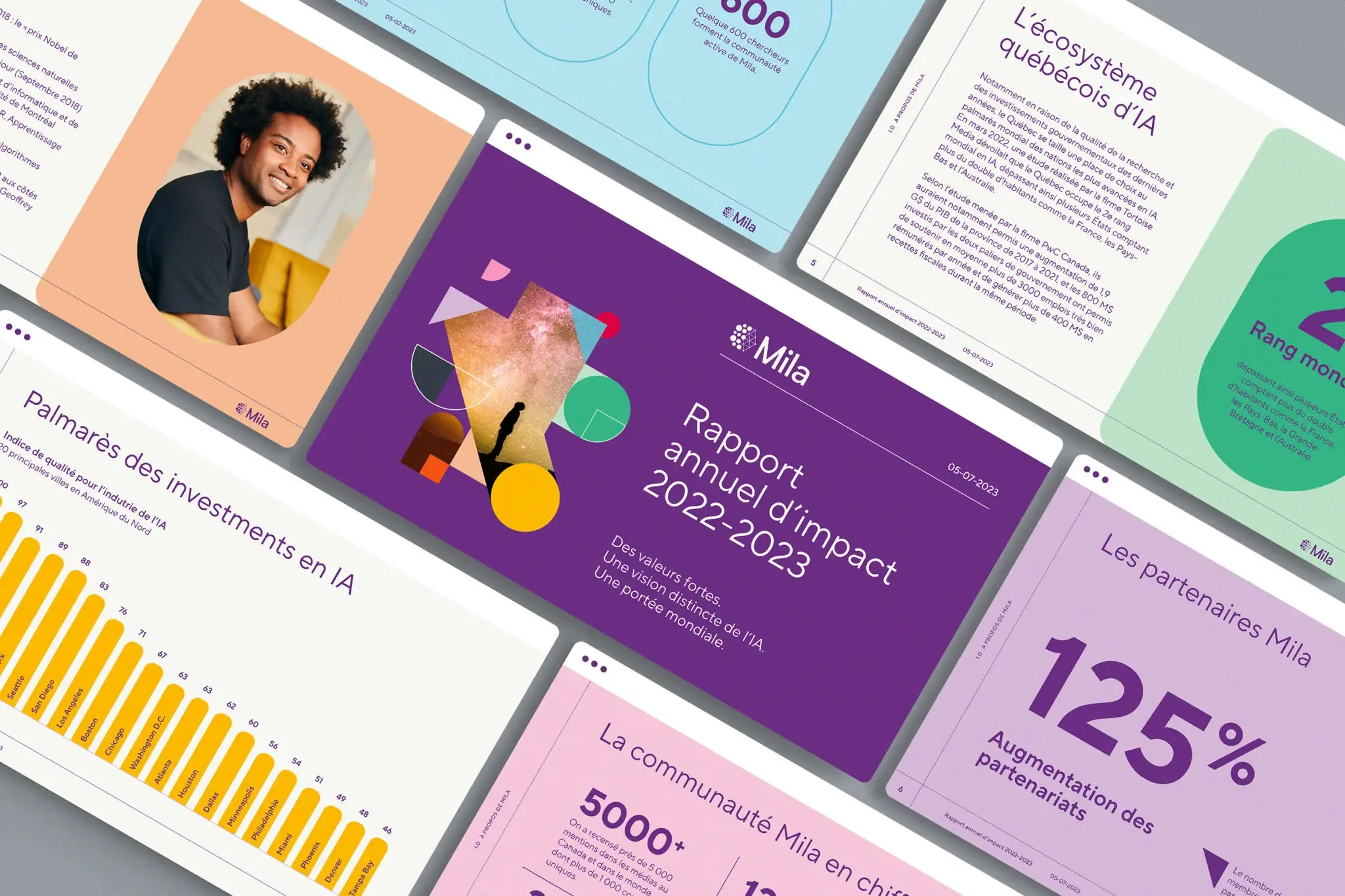 Given AI’s growing importance and the rising interest people from all social spheres are giving the matter, Mila felt it necessary to reflect upon how it could breathe new life into its brand platform, while keeping the assets of its visual identity. The intent was to make this platform more relevant by bringing the institute’s pillars, roles and challenges to the forefront, all the while supporting its growth by meeting its aspirations and ambitions head-on.